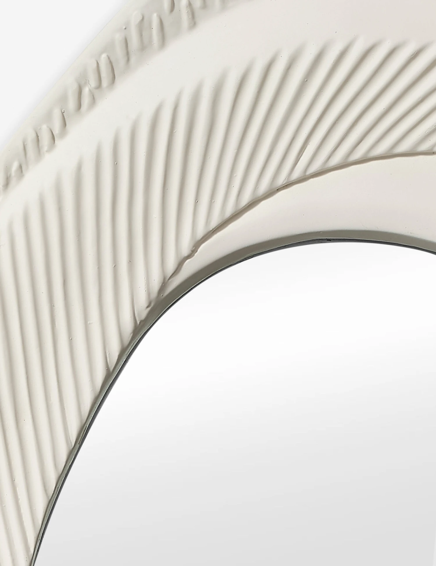 Inspired by the shifting patterns left in white sand beaches as the tide washes out, this unique wall mirror brings an artful poise to any curation. The handcrafted frame is made with resin, offering a lightweight mirror rich with texture. We love the eccentric shape and layered folds for an eye-catching addition to modern wall decor.