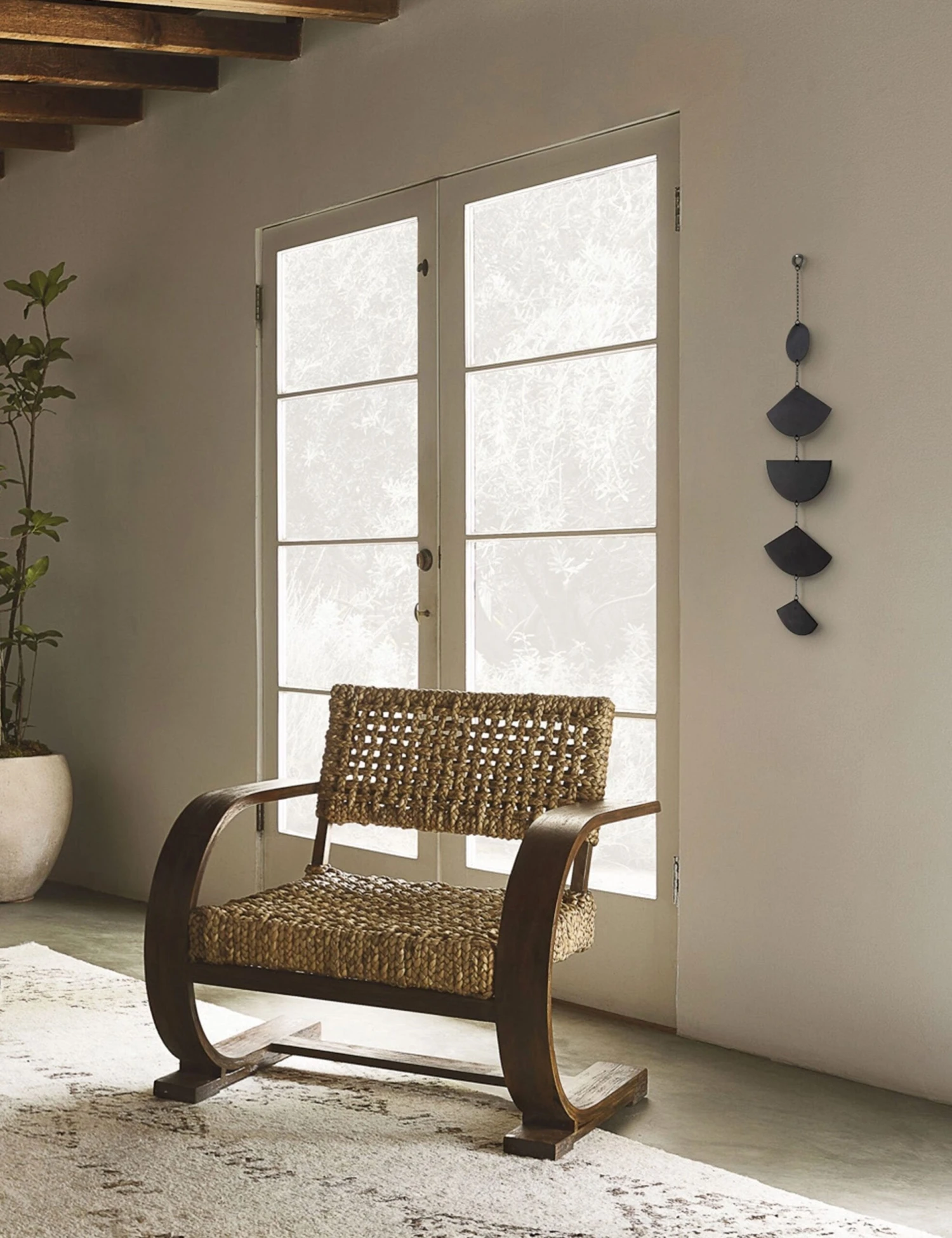 A versatile piece of wall decor, this linear wall hanging mixes simple geometric shapes for an easy-to-love look in any room. Strung on a single chain, this metal wall hanging brings a sense of playful balance to your home.