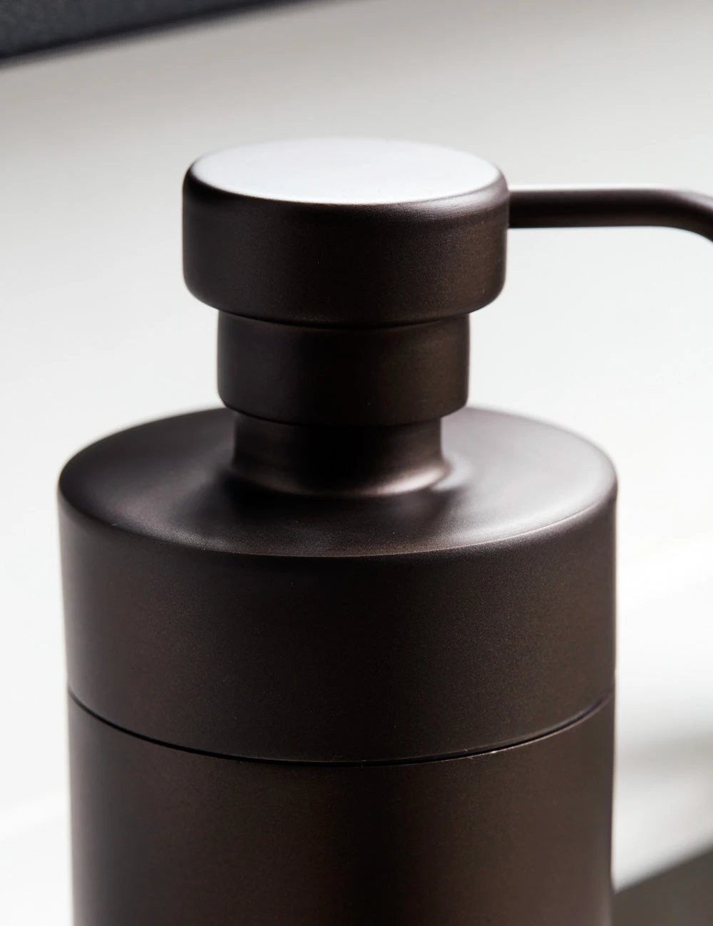 Elevate your bathroom vanity with this metal tumbler and soap dispenser. Its matte brown finish offers a rich luster perfect for transitional decor in a guest bath or en suite.