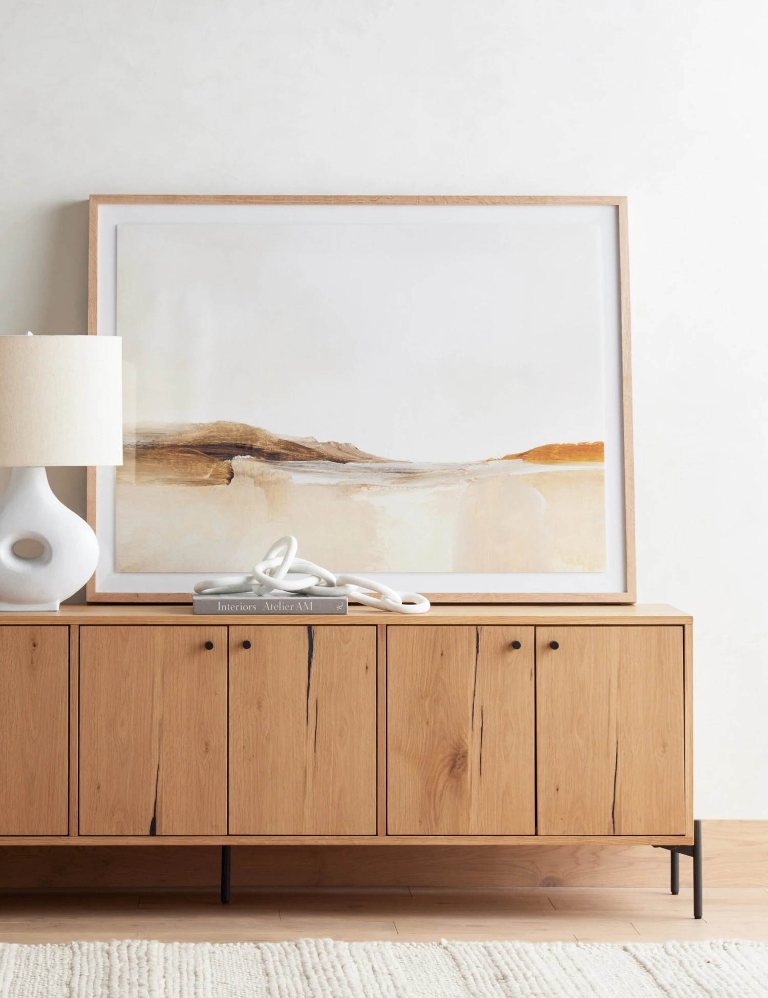 A mountain-inspired composition is brought to life with an earthy palette and minimalist clarity in this modern wall art from Dan Hobday. The sweeping brushstrokes and blended lines catch the eye, offering a grounding balance for your wall decor.