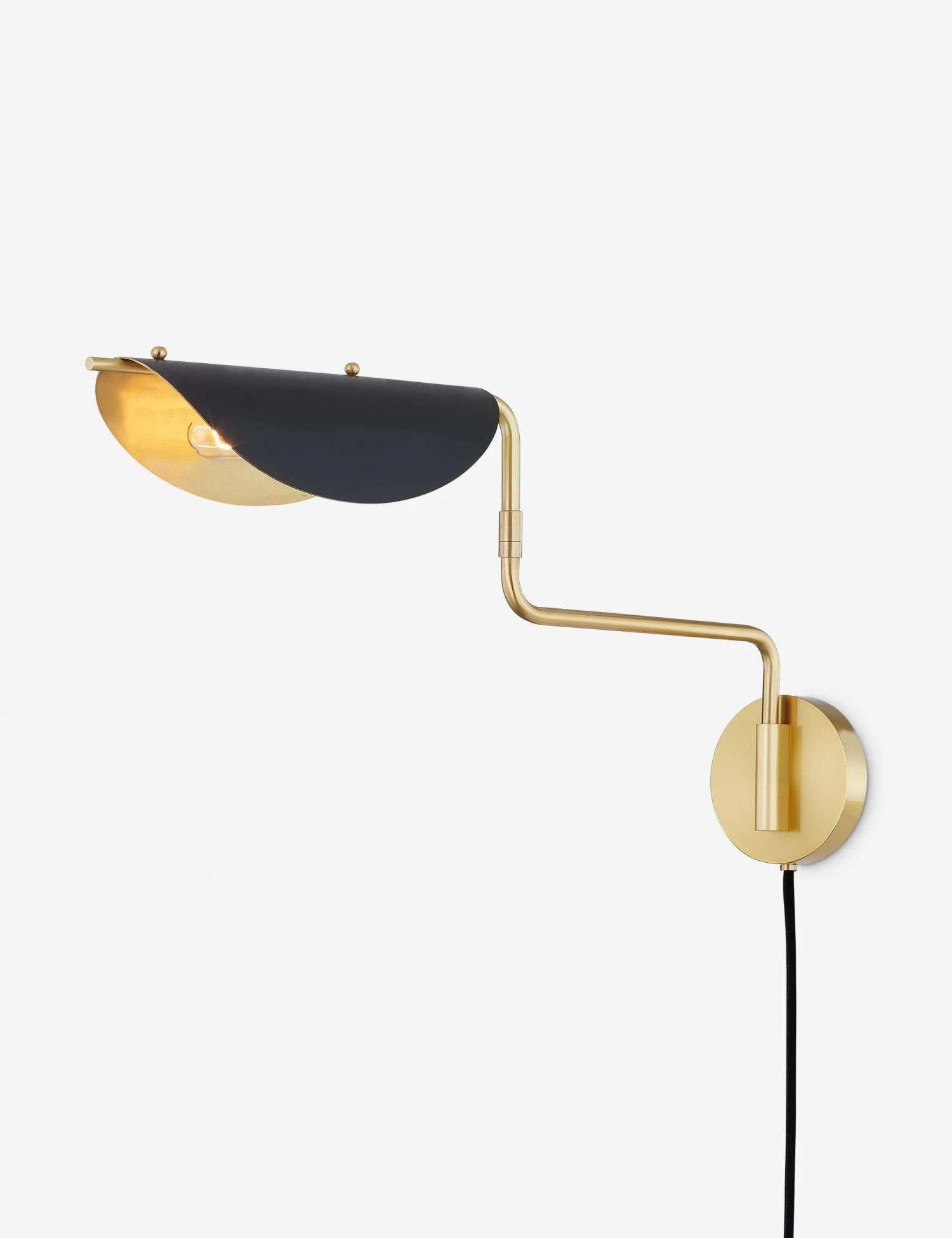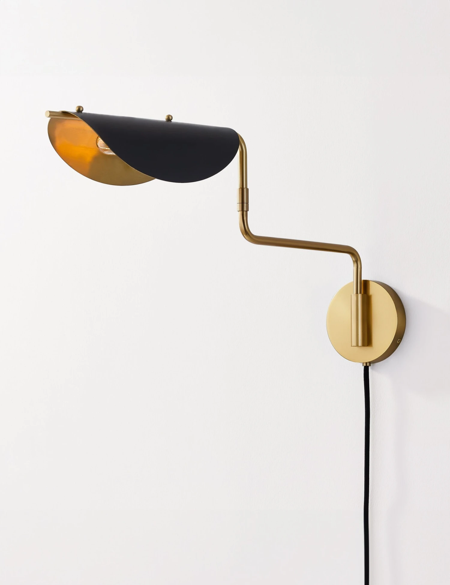 Task lighting should offer a seamless blend of function and form—the Eugene sconce does it with style. The sleek metal shade drapes over the adjustable arm to reflect light down, making this plug-in sconce a brilliant reading light whether styled by your bedside or in a home office or lounge. The arm pivots at two points, allowing you to direct light wherever needed.