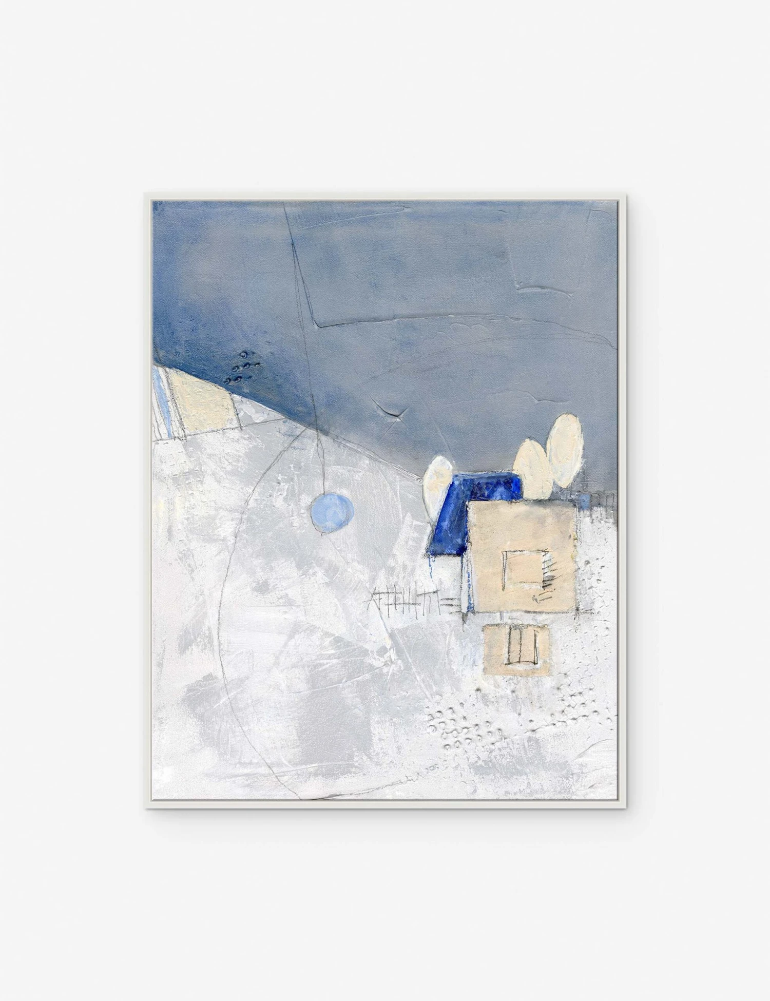 This wall art print brings a bit of the whimsical and layered approach that artist Jill Krasner is known for. Originally a mixed media painting, you can still notice the subtle layering in a mix of blue and gray shades on this wall artwork.