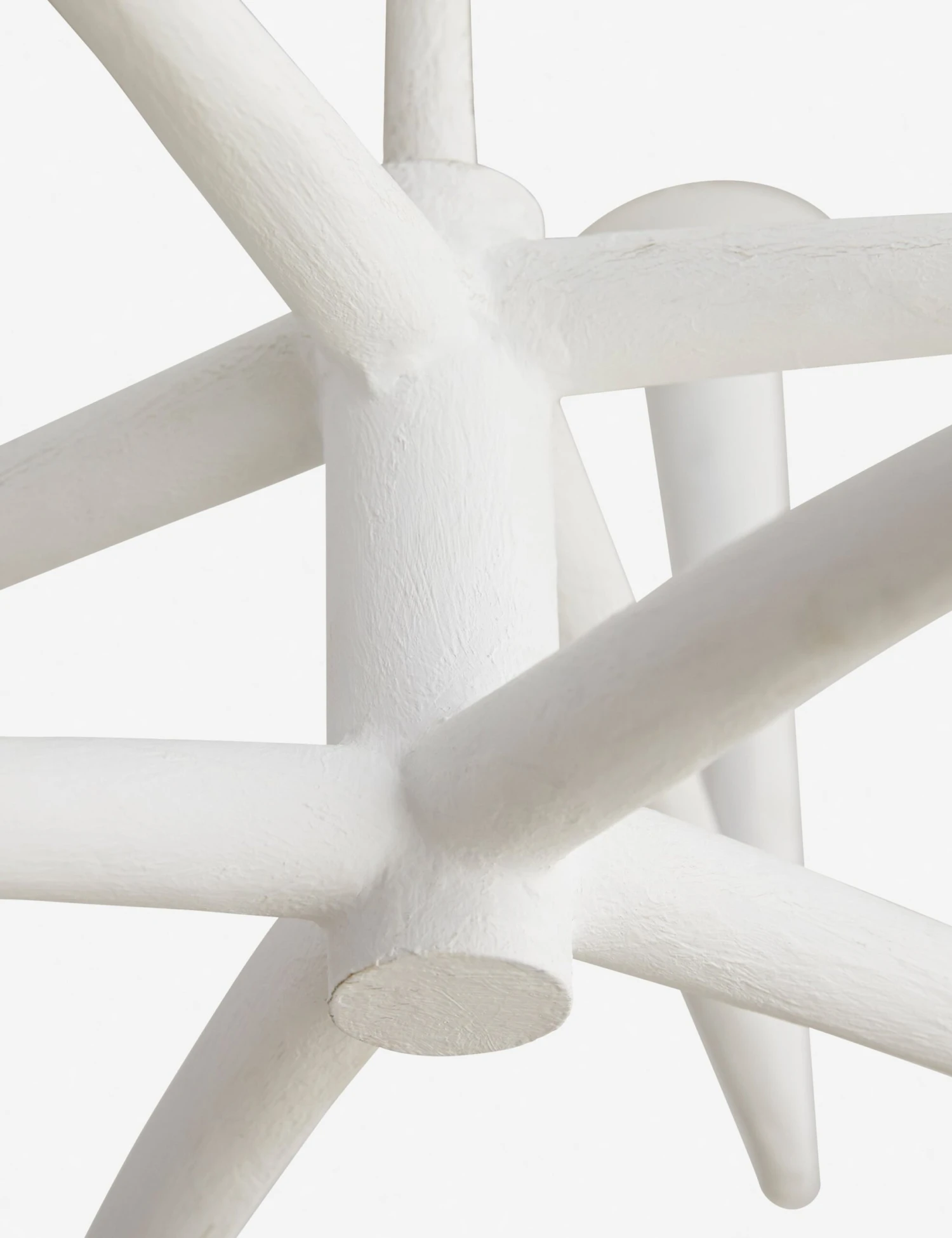 The Isma chandelier reimagines traditional candelabra design with a sleek, angular silhouette. Eight trumpet-shaped arms sit in a tiered arrangement offering ample light and striking appeal. A white gesso finish completes the look with a nod to its traditional roots setting this chandelier off for easy transitional appeal.