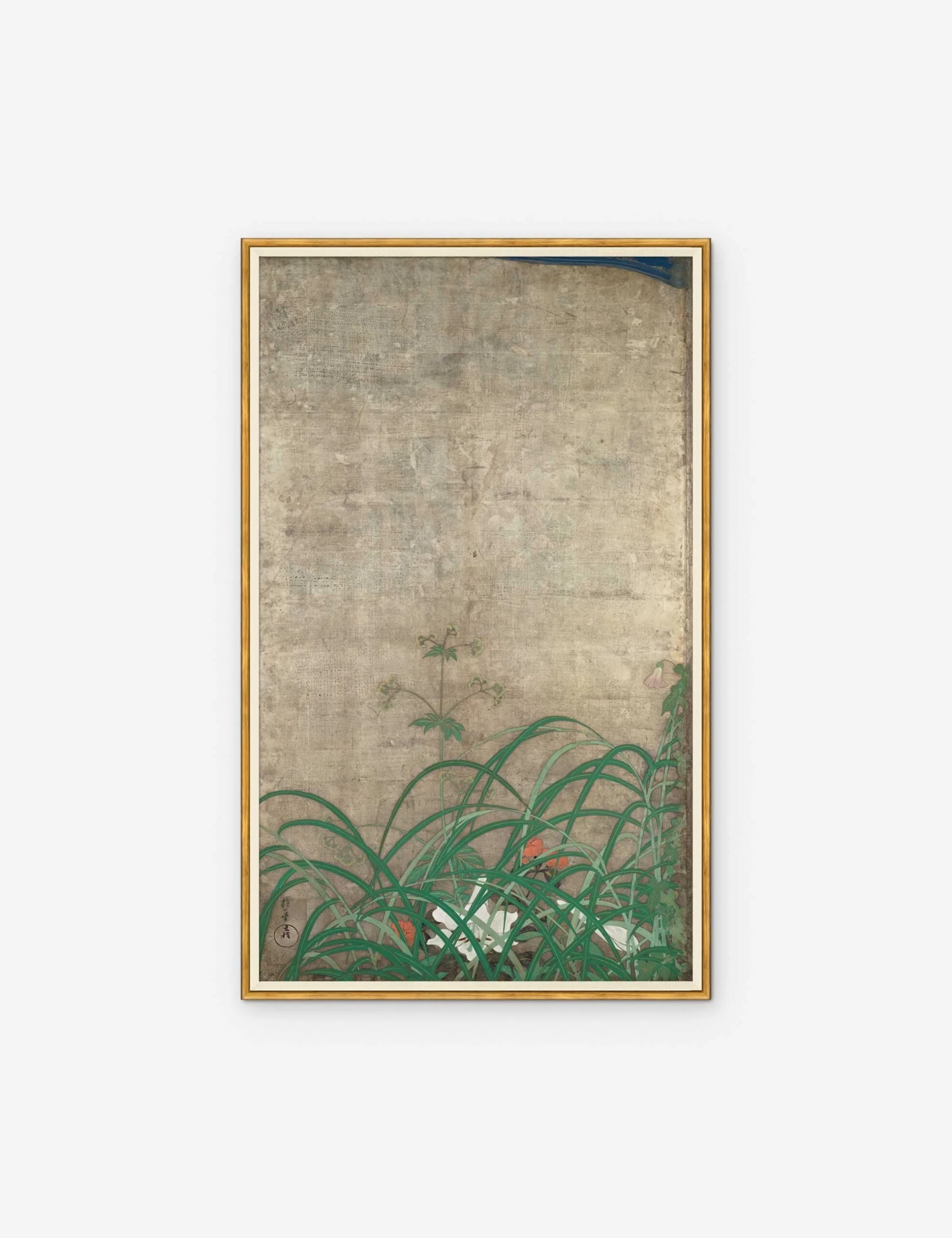 Inspired by traditional painted landscapes, this wall art print brings a serene floral scene to life against a neutral backdrop. Finished with a light wood frame, this oversized panel can be styled on its own or as a diptych to create a focal point and conversation starter for your art wall.