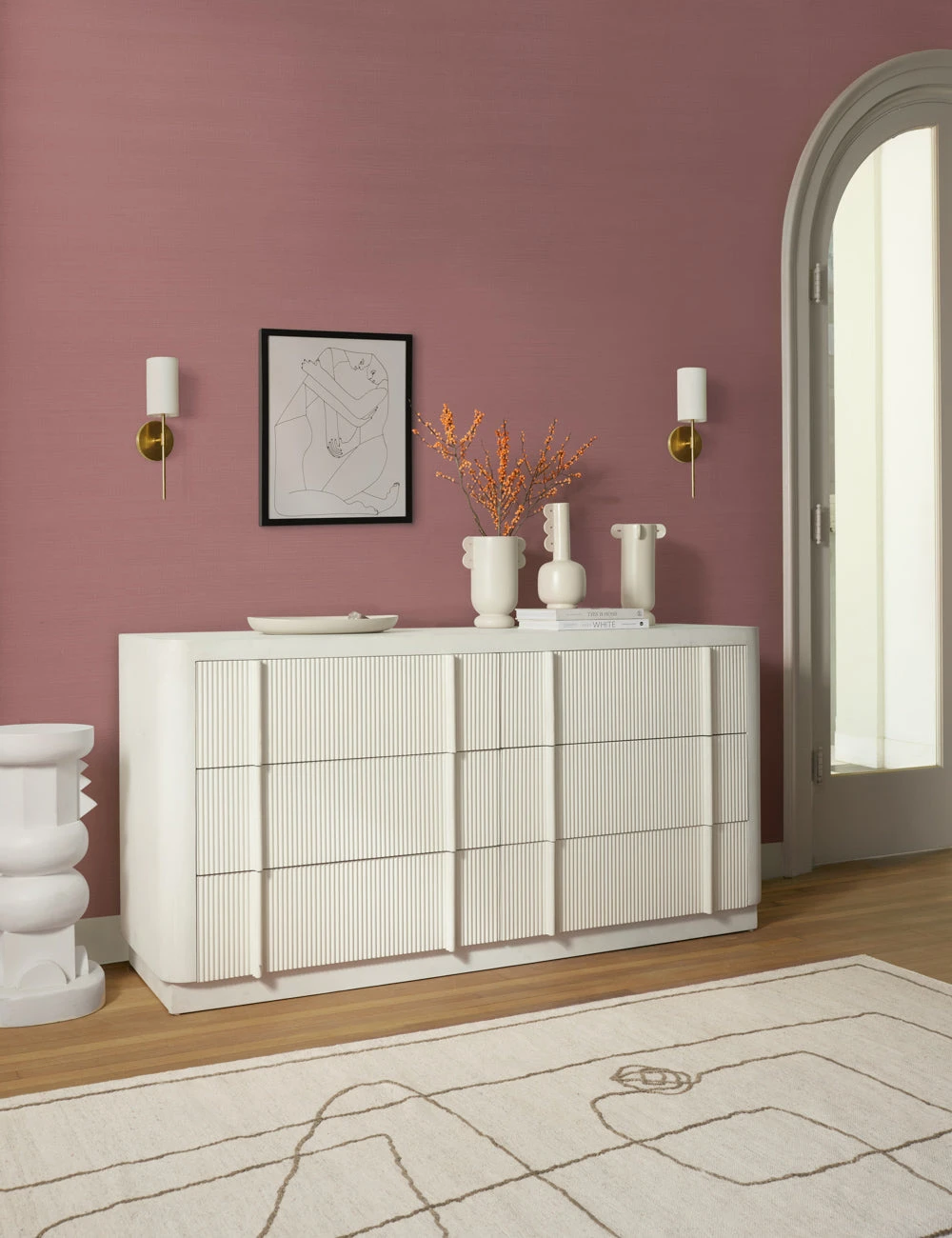 A line-drawn design gives this soft, durable flatweave rug endless style points with functional appeal. Woven from a viscose-wool blend, this abstract rug is softer underfoot than a traditional flatweave. Anchor an artfully curated living room or bedroom with this dynamic rug to strike an inviting, laid-back feel. This floor rug is from our exclusive Sarah Sherman Samuel collaboration and features all the trademarks of her warm, edited style.