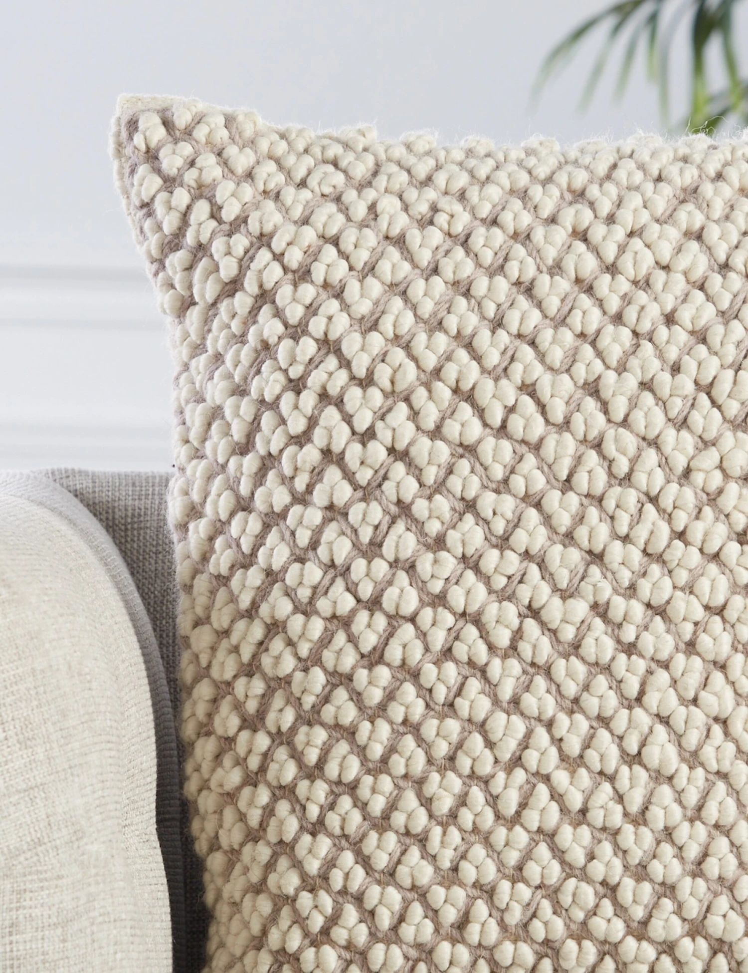 Add plush appeal to your living space with this boucle throw pillow. The chunky woolen design offers an irresistible textural accent that can transform any seat in the house into your new favorite spot to curl up for a cozy moment. We love this decorative pillow for a chic touch of comfort in a modern space.