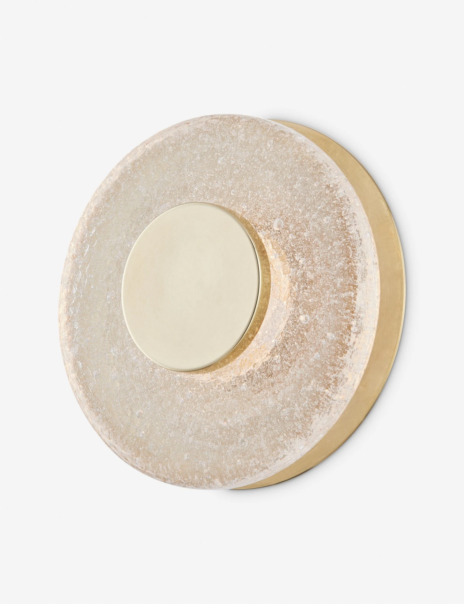 Who said simple can’t be stunning? This slim sconce pairs thick circles of cast glass with metallic accents in a flawless design. When lit, the texture of this beautiful material is on full display, offering a dazzling wall sconce for transitional and modern aesthetics alike.