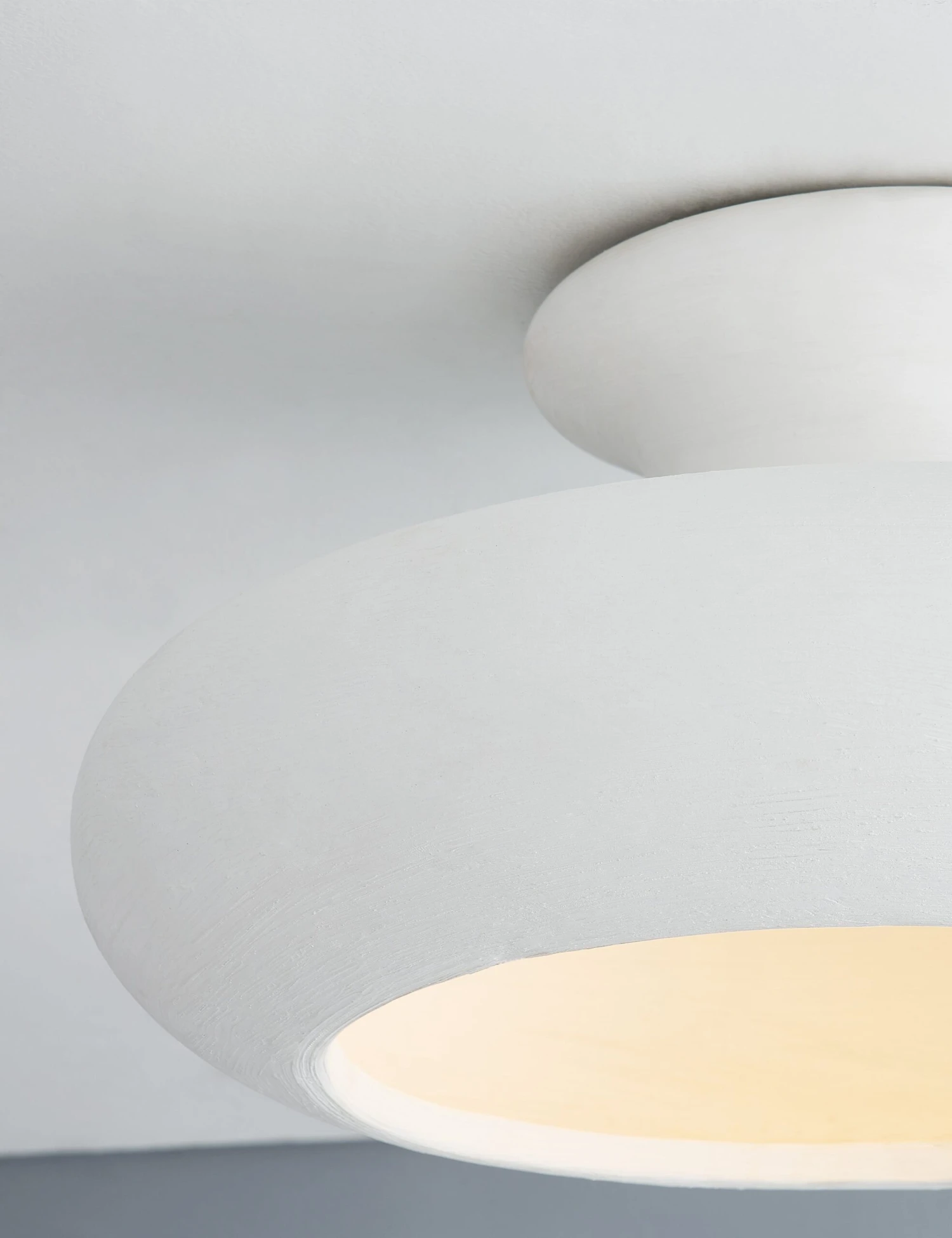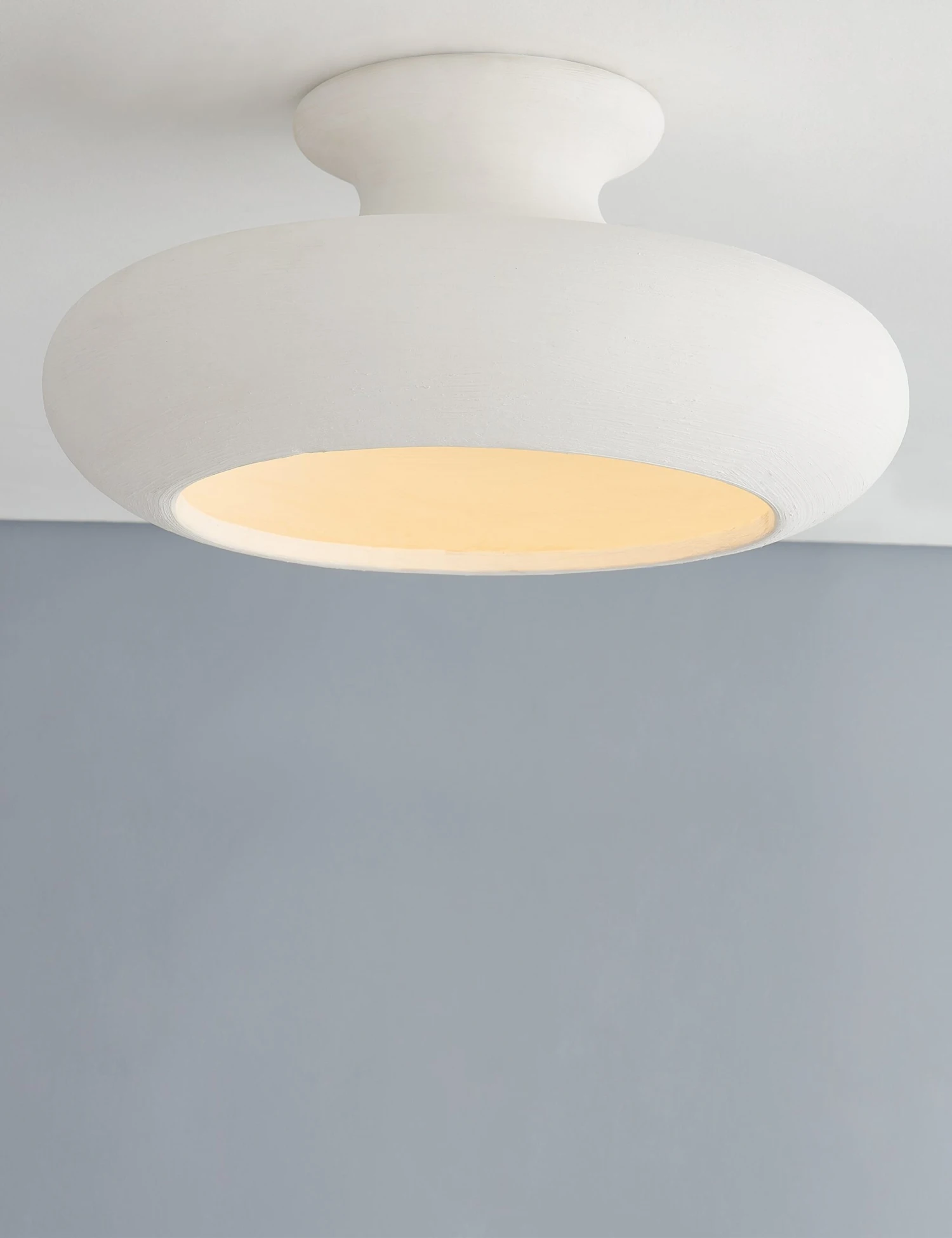 The Omri semi-flush mount light brings the earthen elegance of ceramic pottery to overhead lighting. Its fine textural finish reflects the light out for a smooth and balanced glow. We love the gentle profile of this ceiling light for a thoughtfully modern yet grounded space.