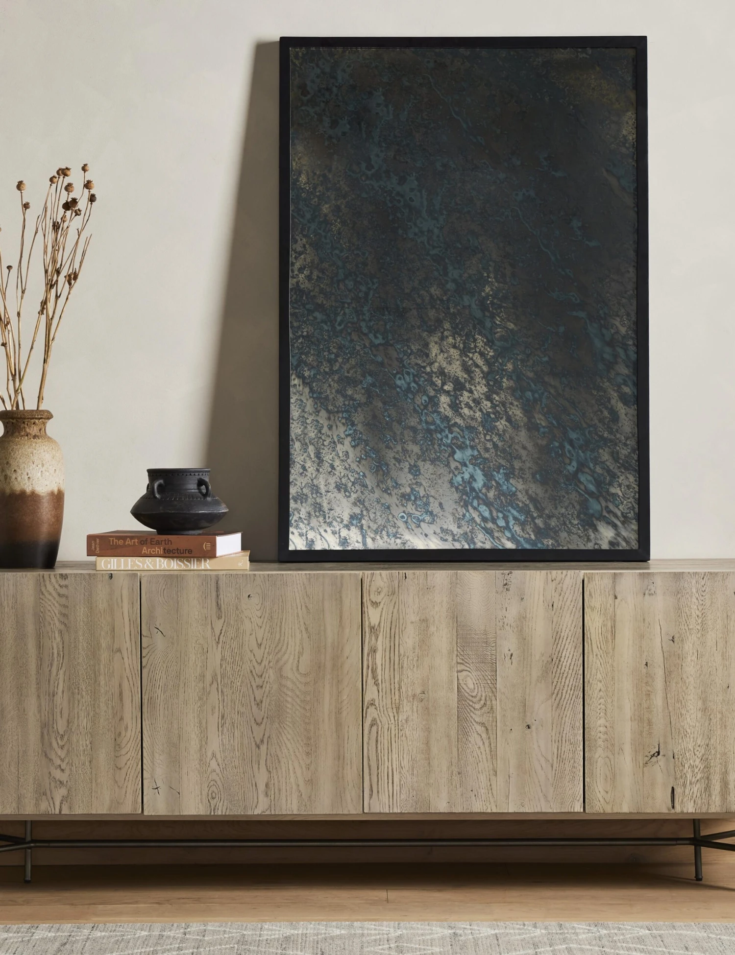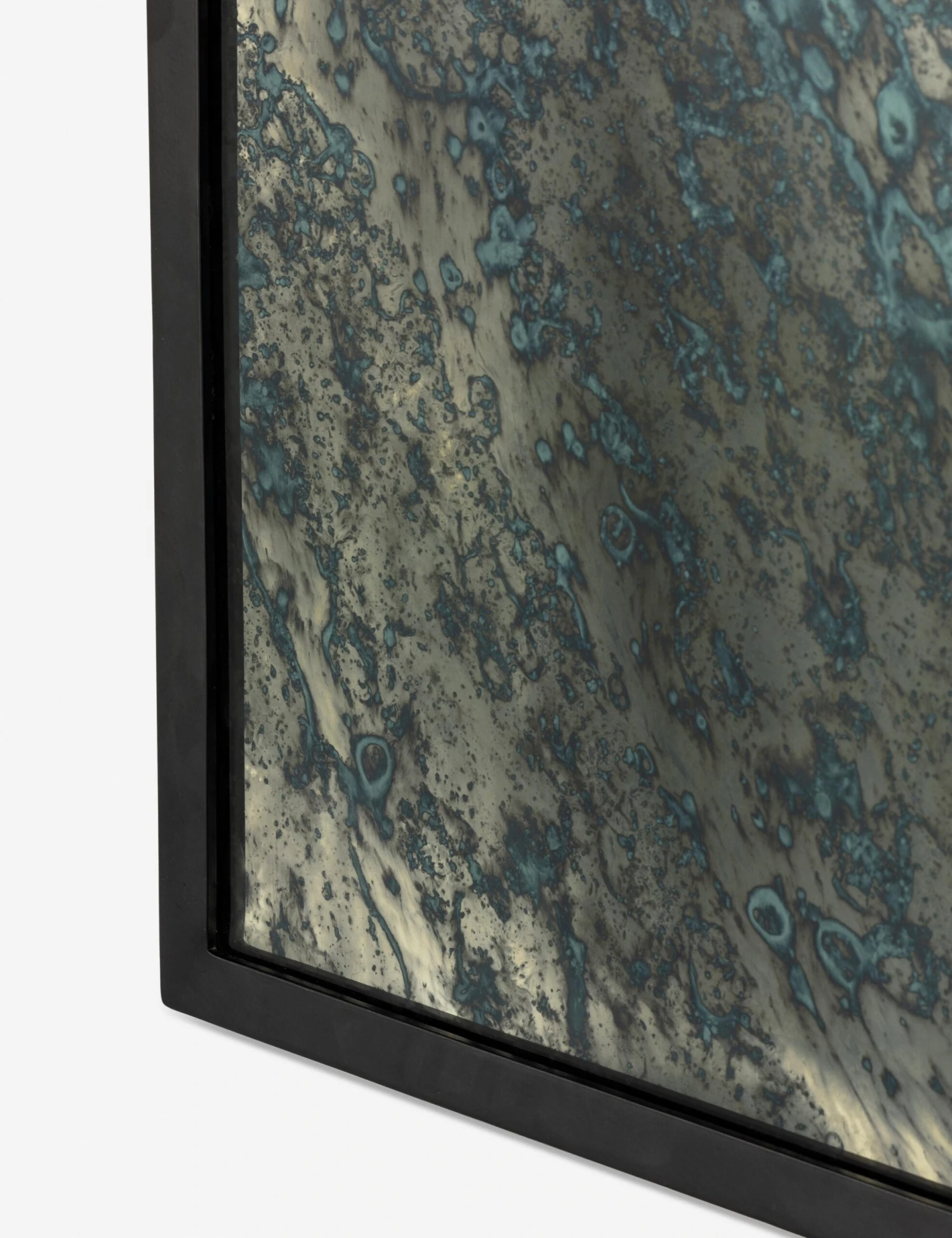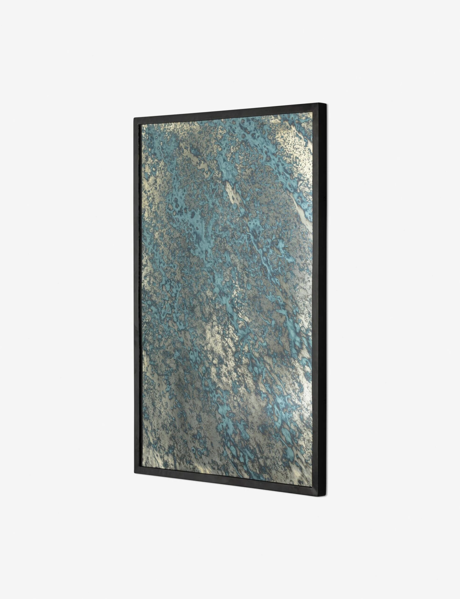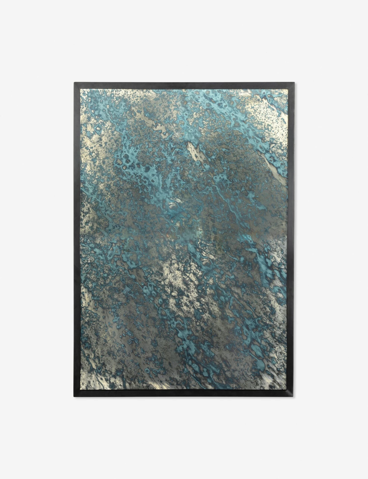 Nothing brings a soft luster and patina to your walls like an acid wash mirror. The water-like finish creates unexpected depth and texture that catches the light and eye with its rippled blue hues. This large wall mirror is a moody addition to any room.