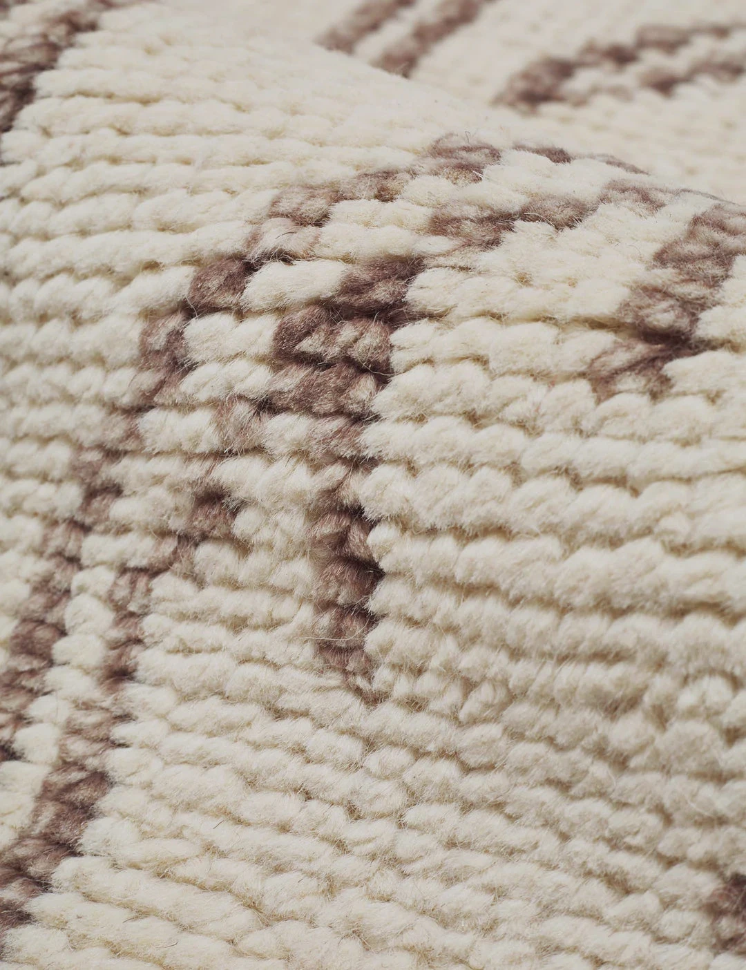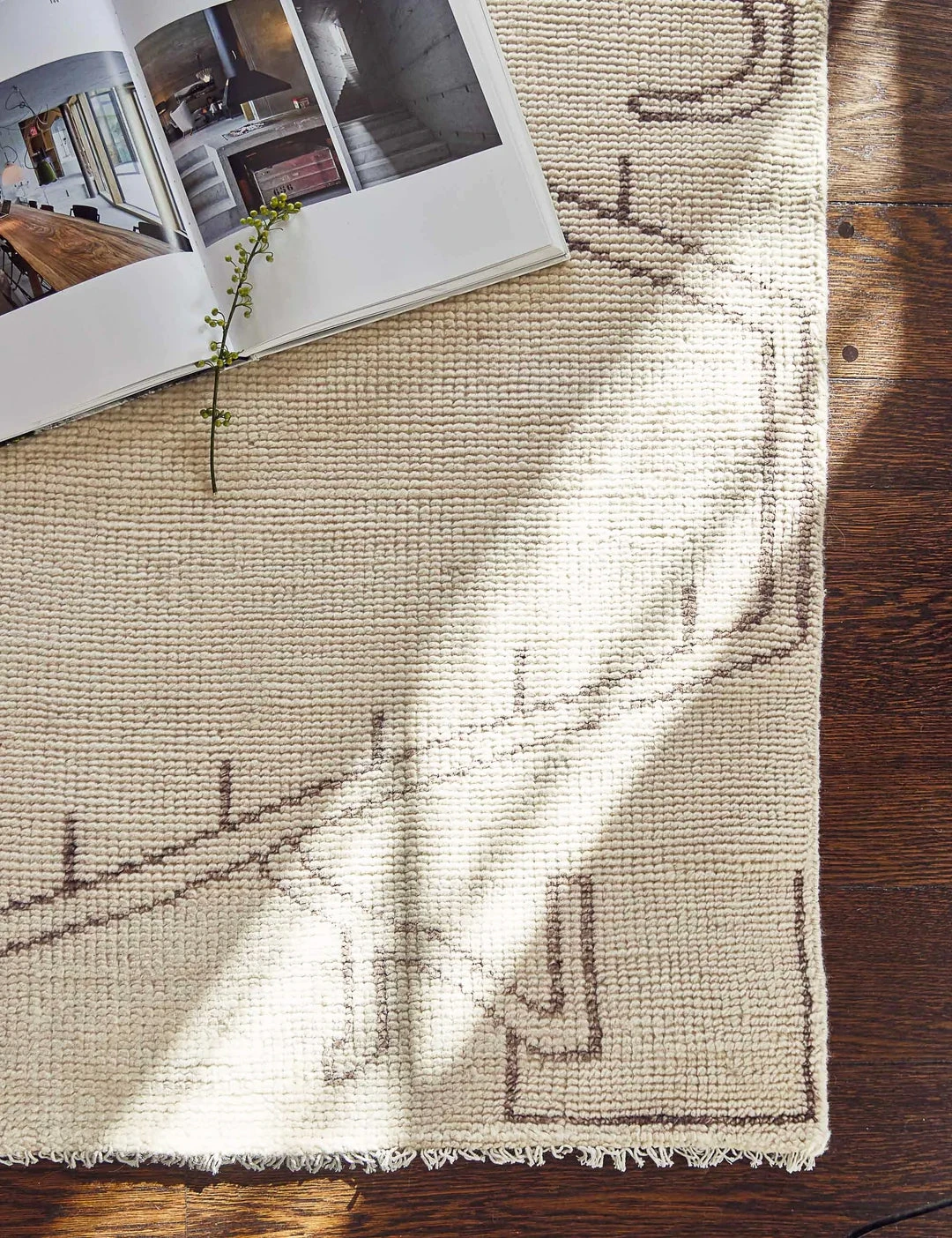 A reinvented geometric design stuns in a warm, neutral color palette that’s been meticulously hand-knotted together using 100% sheep’s wool, lending modern personality with a subtle hint of its Oushak influence. Soft wool illustrating striking symmetrical linework in a neutral hue makes this area rug the versatile yet bold layer you’ve been searching for.