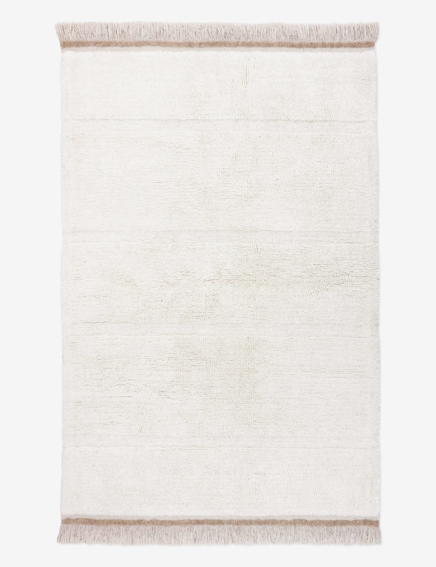 Lorena Canals brings the durability and softness of wool to a patented washable design for a luxurious, easy-care area rug. This rug’s low, textural pile, subtle fringe, and neutral color inspire effortless elegance with a laid-back touch. Enjoy the plush natural touch underfoot and launder again and again for always fresh style.