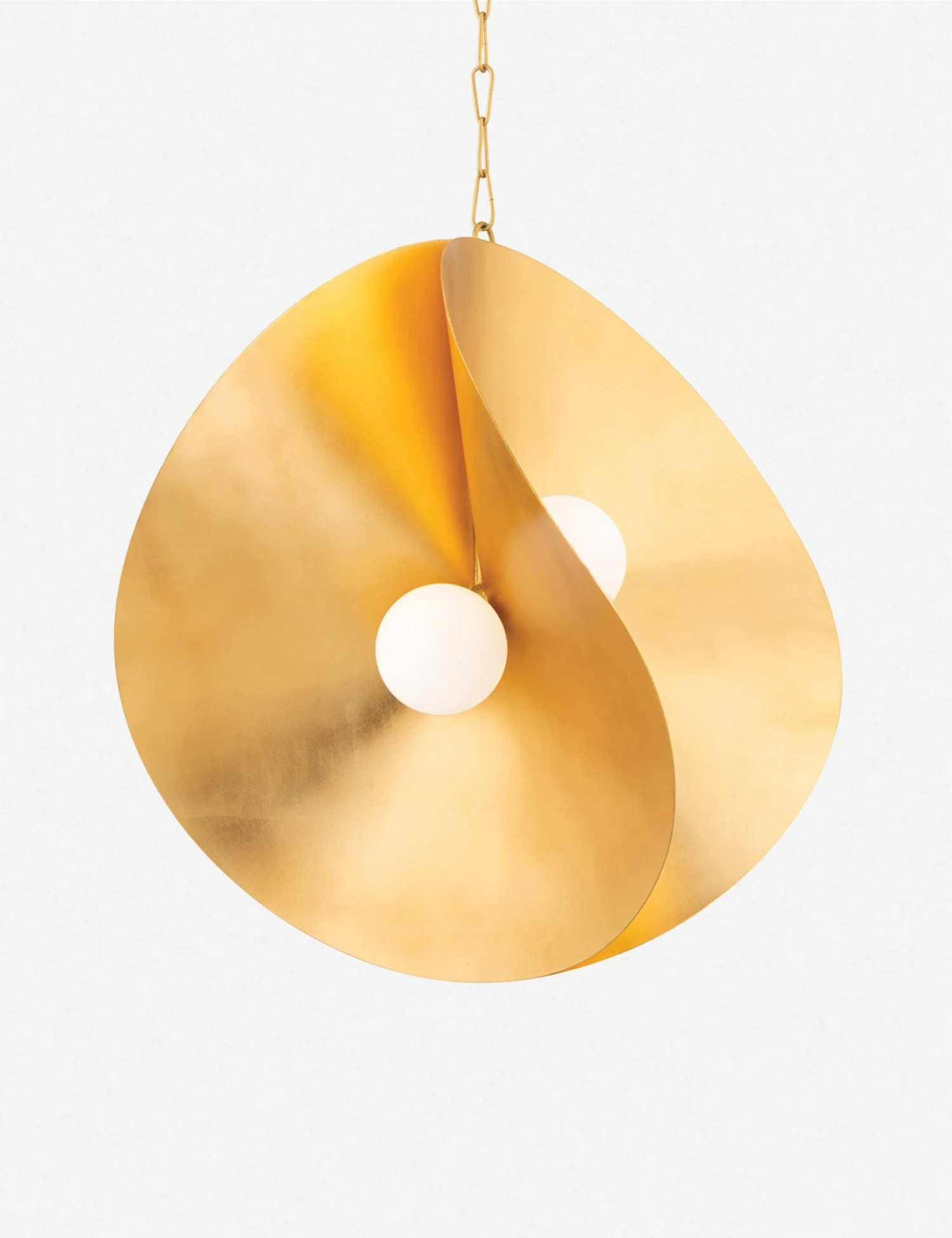 With an organic air, the Siraj pendant’s unique silhouette folds and flows around four opal globes with effortless grace. A polished finish adds warmth and luster to this signature hanging light design, available in three sizes to let you find the right light for your space.