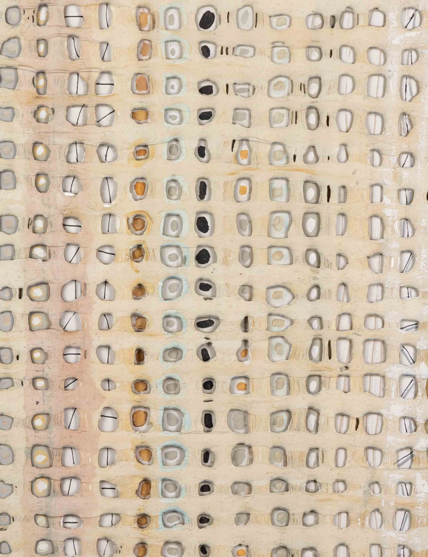 Organic cutouts reveal an eclectic array of dabbed paint and lines in this texturally rich wall art piece. Finished with a spot gloss treatment to catch the eye, Zen offers a unique feature for your wall decor, adding fresh dimension with a pleasing sense of order.